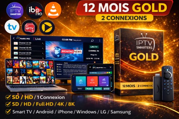 Abonnement IPTV PREMIUM 12 Mois GOLD 2 Connexions